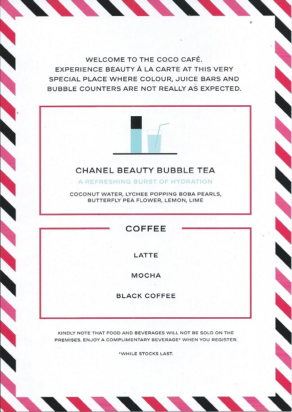 Those of you who are fans of Chanel may have known that they opened a beauty pop-up to celebrate the launch of their latest products from the Cruise Collection, Les Indispensables de L’été, and yours truly managed to have a cup of latte and browse around the much anticipated Coco Café.Address: