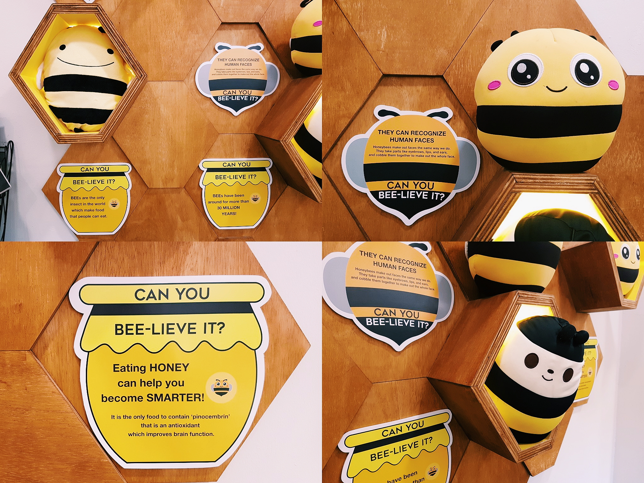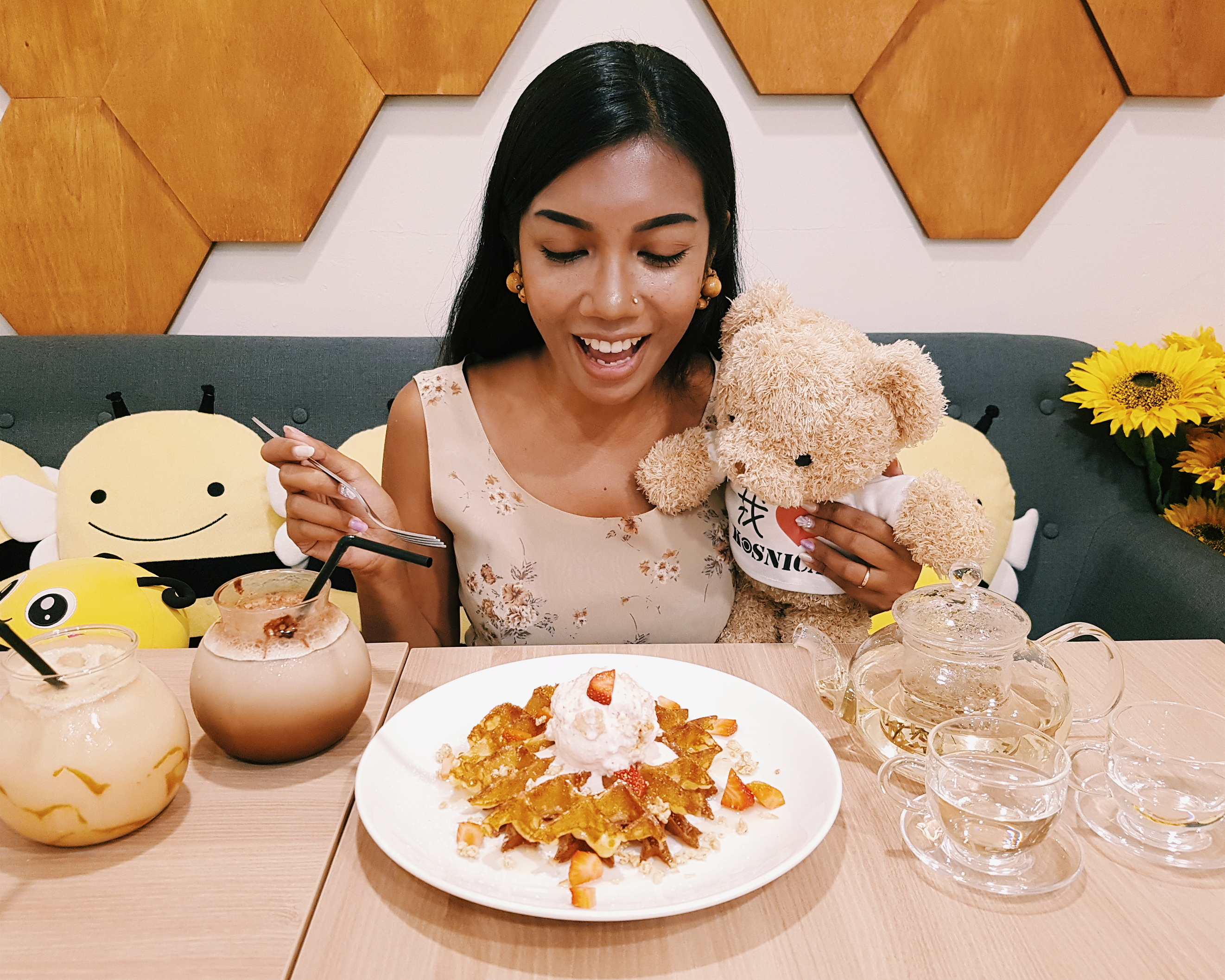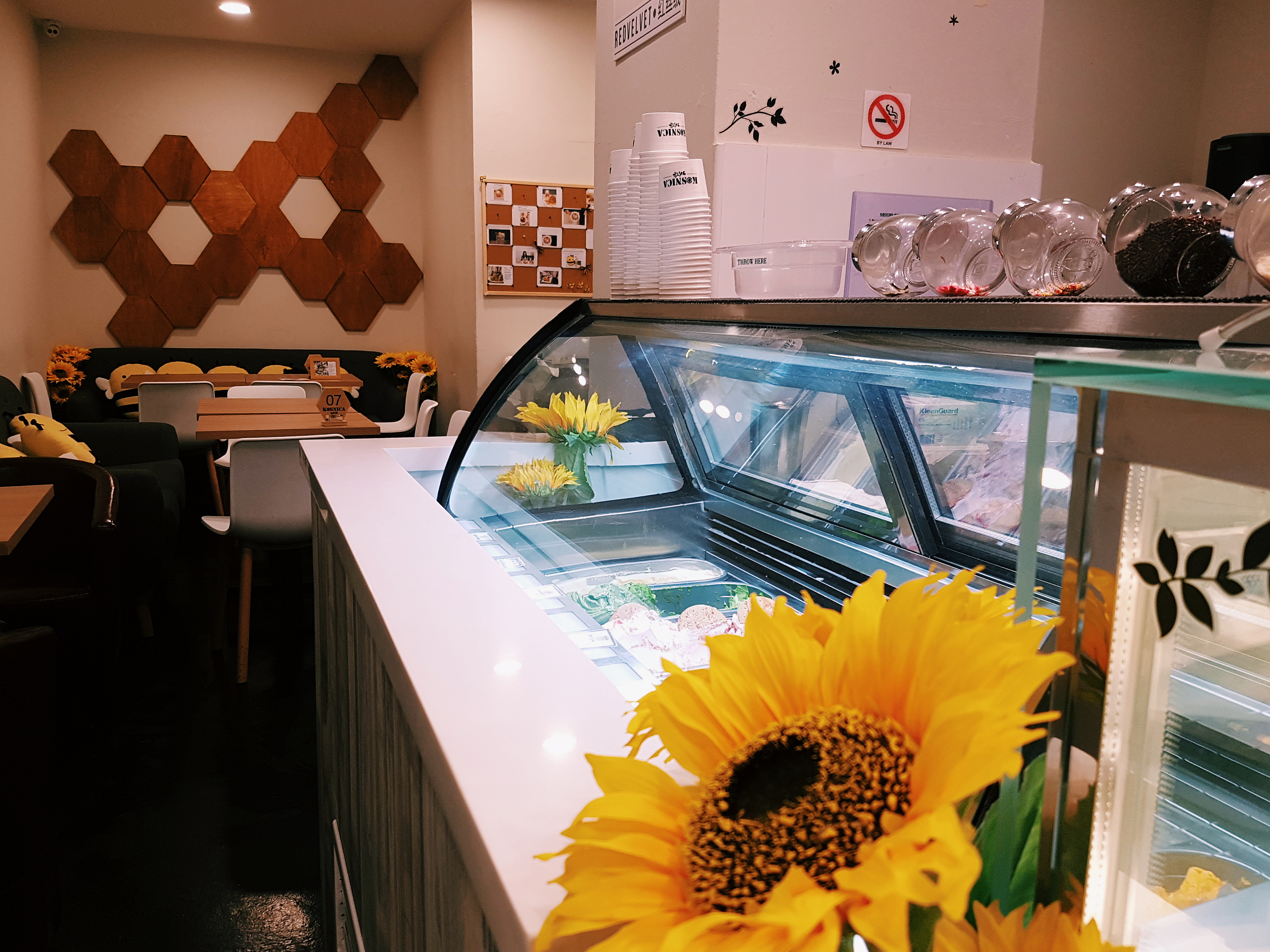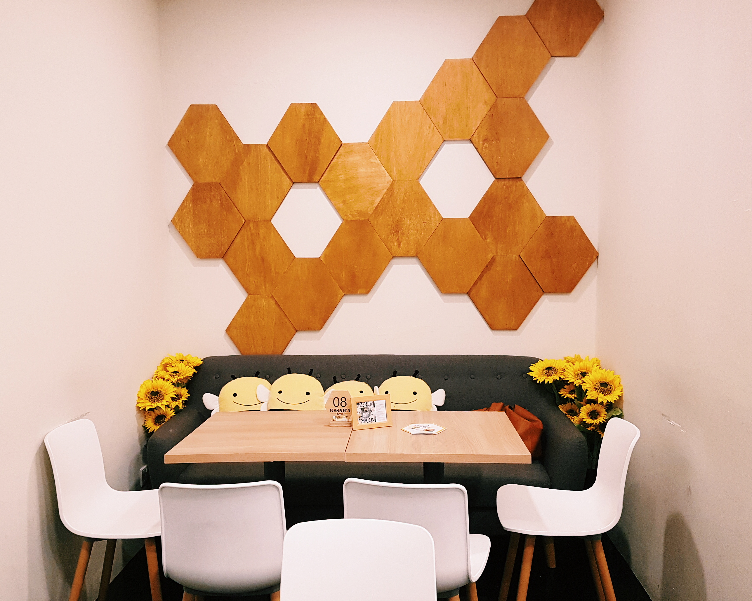 Upon arriving at Kosnica, I felt like skipping around the cafe gleefully (but of course, that would make me look cuck-koo) from just looking at how happy, bright and sweet the place looks with lots and lots of cute smiling bees and sunflowers everywhere.I especially loved the ‘Can You Bee-lieve It?’ Wall where you’ll learn fun facts about bees and pegged notes and photos of clearly happy customers. Almost every turn here is a ‘gram-worthy’ moment!