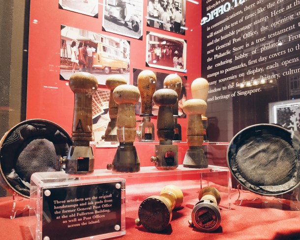 These artefacts are the original handstamps and ink pads from the former General Post Office at the old Fullerton Building as well as post offices across the country.