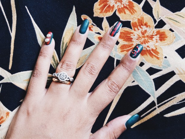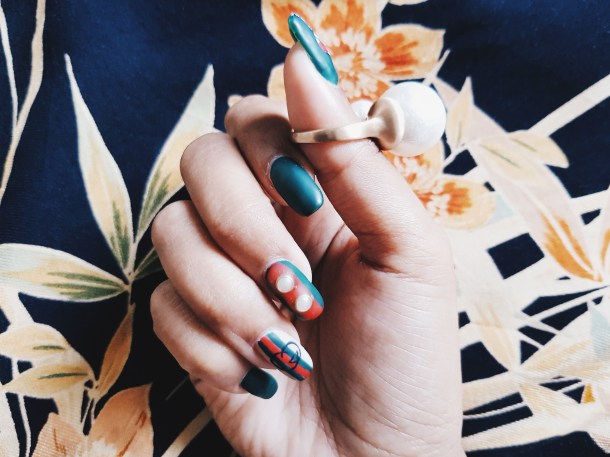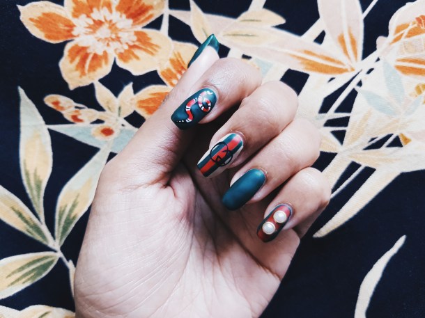 I’m in love with Gucci’s Alessandro Michele’s Garden collection. But there is a problem – I don’t have $2490 to spend on an exclusive Dionysus purse. I’m being real here. I have bills to pay and a home coming up. I would LOVE to have it, not gonna lie but it’s not a priority in my life right now. My nails are a different case though, I need them to be polished so I visit a nail salon at least once a month. Once in a while, I’ll splurge on a OTT manicure. So I figured, why not put Gucci Garden on my nails? That way, I’ll get a piece of luxury without drying out a few months worth of savings.