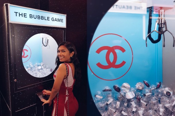 I’m really not an arcade kinda girl but I’ll try anything in the name of Chanel. So here’s having a go at The Rouge Coco Game machines which also serves as a makeup counter. The Bubble Game is really popular for obvious reasons – it’s a claw machine and you can get a miniature size of No.5 L’Eau On Hand Cream if you’re lucky/skillful. Too bad for me, my claw decided to let go of the ball halfway through! Oh, well.
