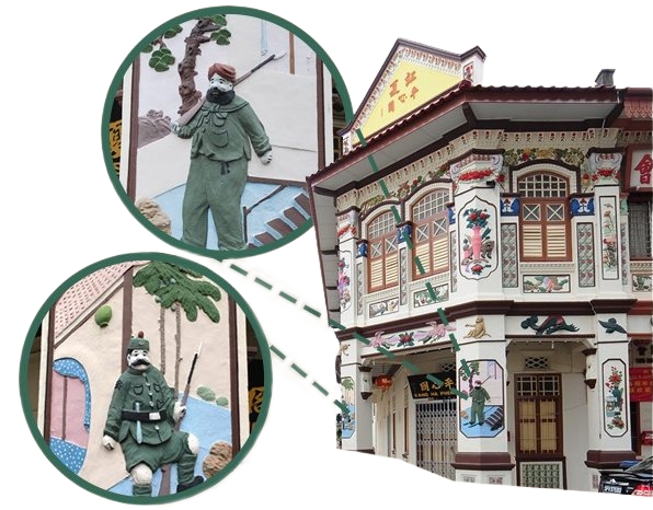 • Sikh Guards were moulded onto the column of the front entrance to “watch over” the building, replacing the traditional “door gods” of Chinese culture.
